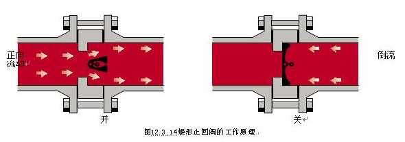 由于扭彈簧的作用力通常閥門是關閉的,當流體正向流動時,流體的壓力使得碟片繞鉸鏈轉動,閥門 打開。一旦流體流動停止,由于彈簧的作用,在倒流前閥門就已關閉。