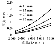 圖3為在同一開口度時調節閥在不同流量輸出時閥芯的進口壓力。